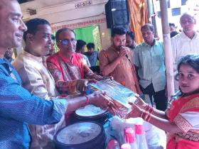 R.C. Pal is presenting the awards to the contestants participating in the competition.